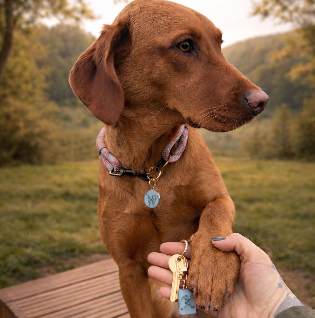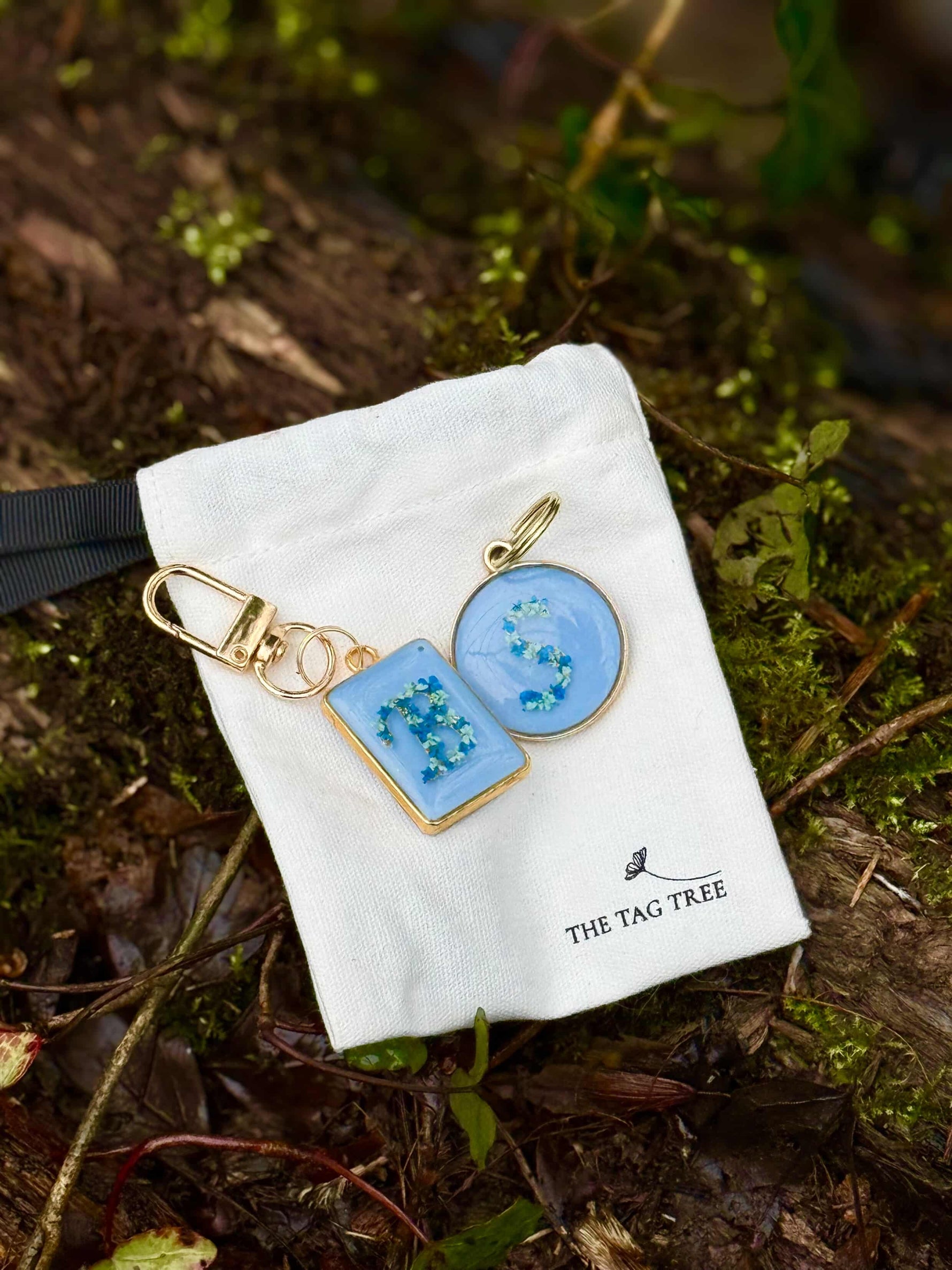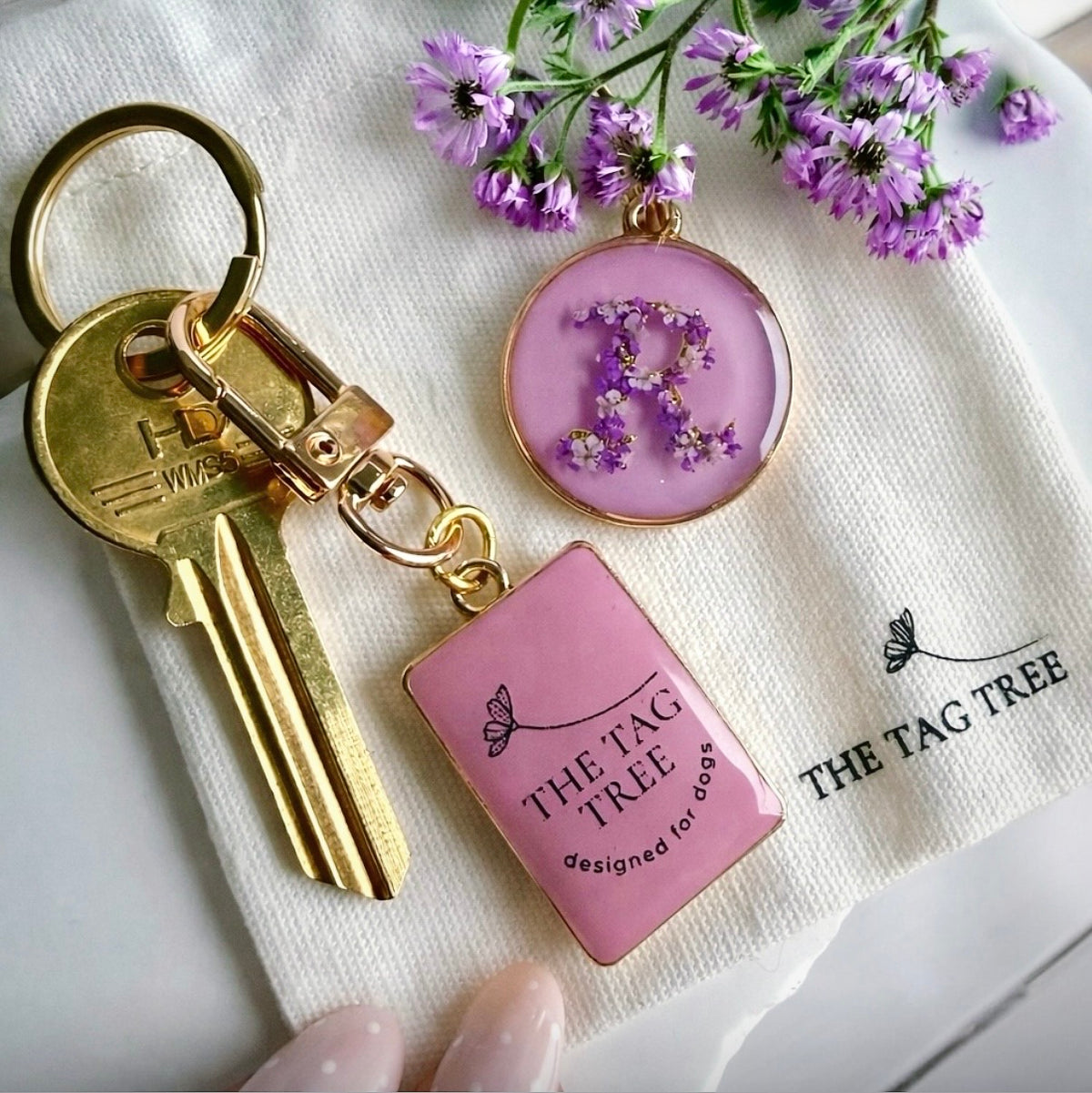 1 x Petals & Paws Signature Tag Tree keyring, personalised with owners initial on the front and finished with our logo on the back
